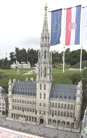 Die Europäische Union ist zur Zeit mit seinen 28 Mitgliedsstaaten nach China (1.349 Mio Einwohner) und Indien (1.210 Mio Einwohner) der drittgrösste Staatenbund (506 Mio Einwohner) dieser Erde. Zur besseren Veranschaulichung dieser Union wurde in Brüssel Gebäude aus Europa im “Mini Europe” im Maßstab 1:25 Detailgetreu nachgebaut. Hier ist aus jedem Mitgliedsstaat ein Bauwerk zu sehen und auch Informationen zu dem Land sowie die Nationalhymne zu hören. Zu sehen sind die einzelnen Staaten der Europäischen Union Stand Juli 2013 mit Flaggen. Dann können sie die Bauwerke sehen mit kurzen Beschreibungen. Die Länder sind so angeordnet wie auch der Rundgang durch das Mini Europe ist beginnend mit Europa.