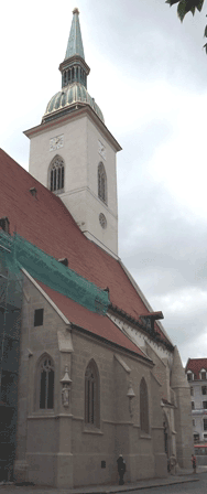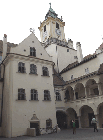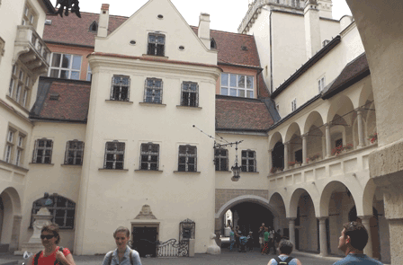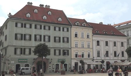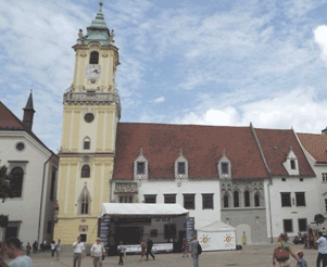 Heute begann unser Sightseeing Urlaub indem wir für 90 Cent ein Straßenbahn Ticket erwarben womit wir in die Innenstadt fuhren. Die Haltestelle (Endstation) der Linie 4 lag nur 5 Gehminuten von unserem Stellplatz entfernt und die Fahrt in die Innenstadt dauerte ca. 25 Minuten. An der Haltestelle “Jesenskeho” stiegen wir aus und waren am Anfang der Fußgängerzone auf dem Hviezdoslav-Platz. Er ist einer der größten Plätze Bratislavas und ist dem slowakischer Dichter Pavol Orszagh Hviezdoslav gewidmet. Hier steht auch die Staure von ihm sowie das slowakische Nationaltheater und das Hotel Carlton. Hier stehen auch die vielen Verkäufer der Stadtrundfahrten die wir auch noch machten. Unser Weg führte uns aber als erstes ins Mc Cafe wo wir gut frühstückten. Nach dem Frühstück gingen wir erst in die Touristik Info um uns wie immer mit allen wichtigen Informationen auszurüsten. Danach besuchten wir den berühmtesten Arbeiter Bratislavas “the watcher”. Der Kanalarbeiter mit dem Namen “Cumil” schaute nach der Arbeit gerne den Frauen unter den Rock. Heute erinnert eine Bronzefigur an ihn und ist eine Touristenattraktion. Nachdem viele Autos über ihn gefahren sind stellte man ein Schild mit der Aufschrift “Man at Work” auf um auf ihn hinzuweisen. Der Weg führte uns weiter zum Hauptplatz Bratislavas dem Hlavne Namestie. Hier spielt sich das Leben der Altstadt ab. Hier steht unter anderem das alte Rathaus, der Maximiliansbrunnen, das Stadthalterpalais und das Cafe Meyer. Hier begann auch unsere einstündige Altstadtrundreise mit dem Presporacik Touristenbus. Die Erklärungen waren sehr interessant und wir lernten viel über die Gebäude in Bratislava. Danach gingen wir Essen und waren über die Preise überrascht. Eine Schnitzel Wiener Art kostete ausserhalb Bratislavas ca. € 8,00 (große Portion). Hier in der touristischen Innenstadt bezahlten wir für weniger Essen €14,80. Das ist eine Gewinnspanne! Was wir heute noch alles sahen war die ehemalige Krönungskathedrale der ungarischen Könige den Martinsdom, die Klarissenkirche mit Kloster, das Michaels Tor, die Trinitanier Kirche und viele schöne Häuser und Staturen mit Geschichte. Am sehr späten Nachmittag fuhren wir wieder mit der Straßenbahn zum Campingplatz. Am Abend hatten wir dann kein Fernsehen da ein Gewitter den Empfang störte. Wir machten und dann unseres eigene Programm und schauten zu wie die Zelte bei Blitz und Donner gesichert wurden. Nicht alle hatten es geschafft. Wir schliefen dann irgendwann bei schönen Regengeräusch ein.